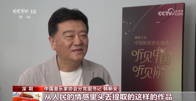 中國(guó)音樂(lè)家協(xié)會(huì)分黨組書(shū)記 韓新安:我們?cè)~曲作者都是從生活的源頭,從人民的情感里頭去提取的這樣的作品,為他們抒情抒懷,來(lái)抒發(fā)他們對(duì)我們生活的一種熱愛(ài)。